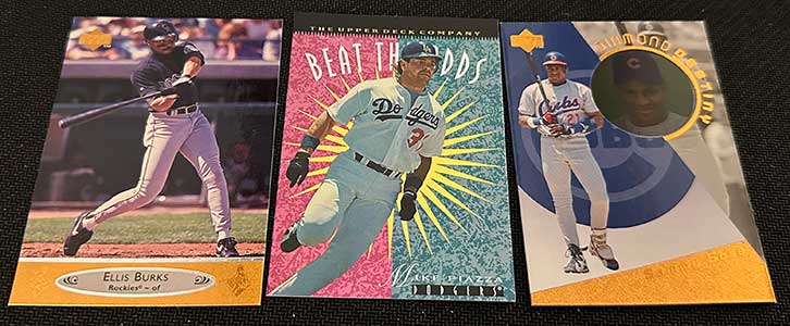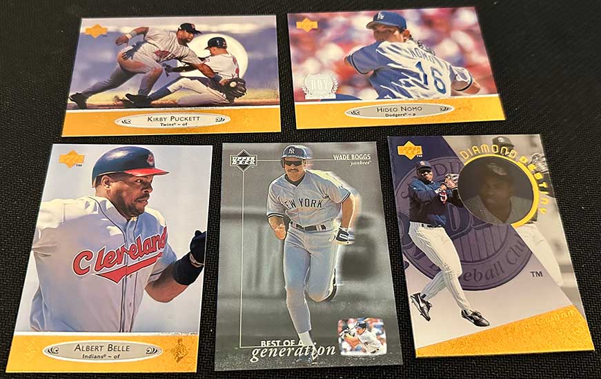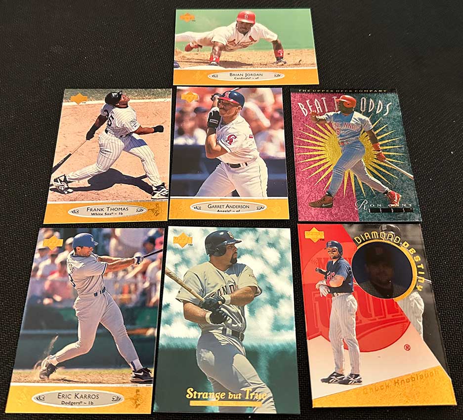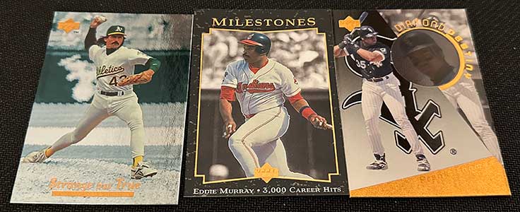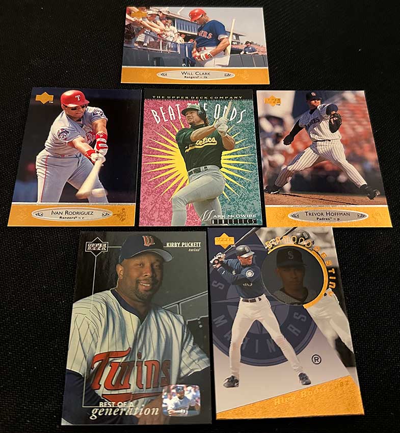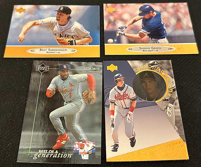 1996 Upper Deck Tech Baseball features base cards from the main 1996 Upper Deck Baseball release. All 480 base cards are included and they’re the same. The only difference is that you won’t find any of the same inserts.
