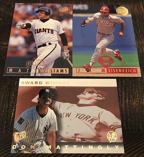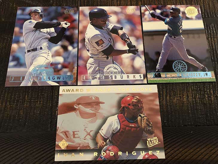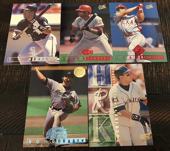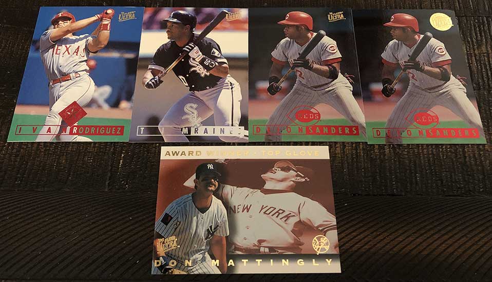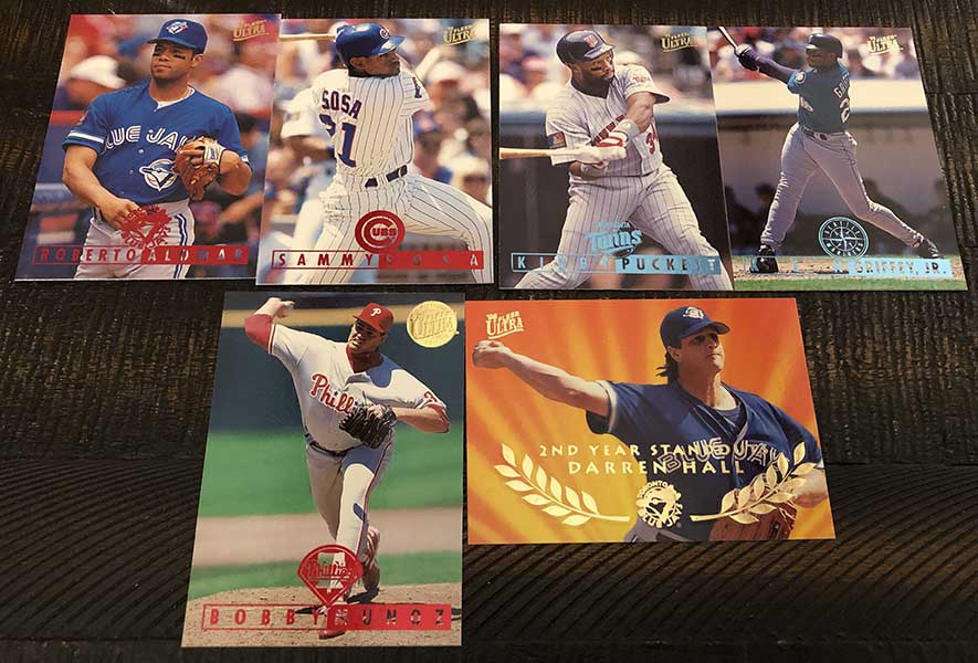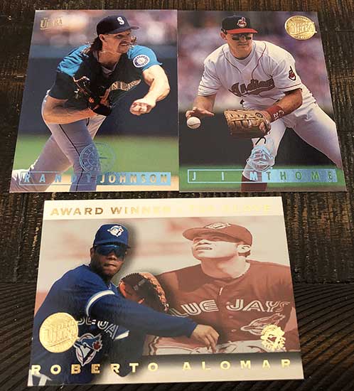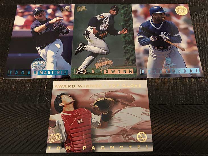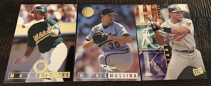 Inserts are obviously plentiful in this one, but not all of them are easy finds. Power Plus inserts fall just once in every 37 packs, so there is no guarantee you will find one in every box. Also new in 1995, Ultra features Hot Packs with nothing but insert cards. That’s right, a dozen insert cards in one pack. These Hot Packs are found once in every few boxes.