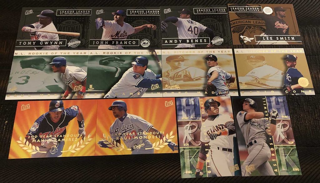Tony Gwynn League Leaders, John Franco League Leaders, Andy Benes League Leaders, Lee Smith League Leaders Gold Medallion (1:30 packs), Raul Mondesi Award Winners, Bob Hamelin Award Winners, Greg Maddux Award Winners, David Cone Award Winner Gold Medallion (1:40 packs), Manny Ramirez 2nd Year Standouts, Raul Mondesi 2nd Year Standouts, Barry Bonds Home Run Kings & Jeff Bagwell Home Run Kings