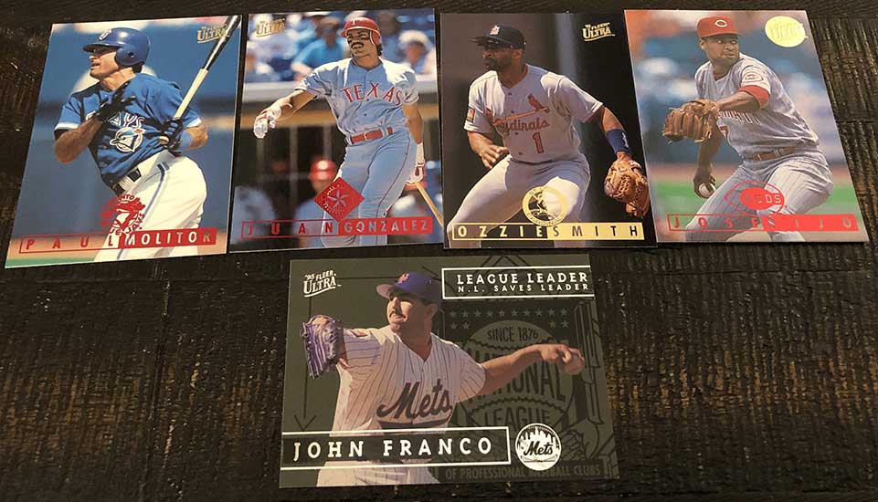 Paul Molitor, Juan Gonzalez, Ozzie Smith, Jose Rijo Gold Medallion & John Franco League Leaders (1:3 packs)