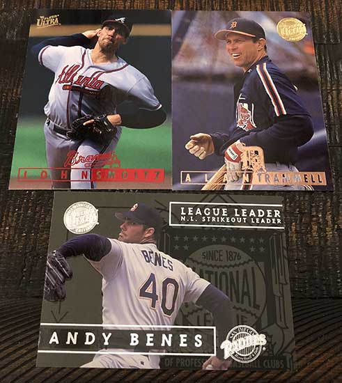 John Smoltz, Alan Trammell Gold Medallion & Andy Benes League Leaders Gold Medallion (1:30 packs)