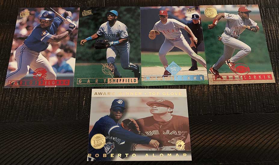 1995 Fleer Ultra Baseball was released in two series. Series 1 features a 250 card checklist, while the Series 2 base checklist is just 200 cards. As had become customary by this time for Ultra, the set is absolutely loaded with inserts. Like 1994, each pack contains one insert. Brand new for 1995, though, is the full-set Gold Medallion parallel, which are supposed to be one per pack.