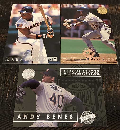Darryl Strawberry, Jose Vizcaino Gold Medallion & Andy Benes League Leaders Gold Medallion (1:30 packs)