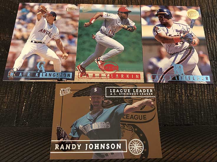 Mark Langston, Barry Larkin, Cecil Fielder Gold Medallion & Randy Johnson League Leaders (1:3 packs)