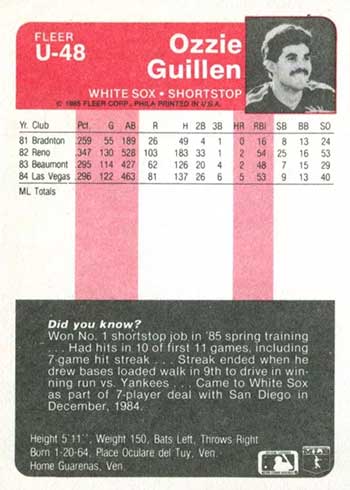 48 Ozzie Guillen, Chicago White Sox XRC