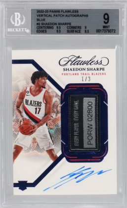 Graded: 2022-23 Panini Flawless Vertical Patch Autographs Blue #2 Shaedon Sharpe Mint 9 The sports card hobby can reward, and ... -