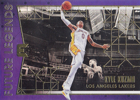 With a pair of photos on the front and the holographic backdrop, the 2017-18 Panini Essentials Basketball base set has a bit of a Flair Showcase vibe. Parallels come in a few levels include Silver, Gold, Platinum and Purple.