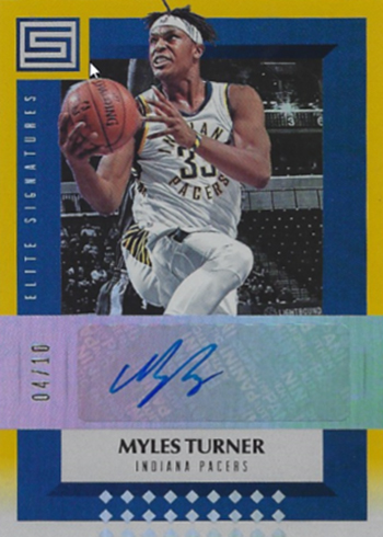 Parallels come in several levels, a couple of which are Elite staples. Status cards are numbered to the player’s jersey number. Aspirations are a flip of sorts, with the number of copies limited to 100 minus the jersey number. Die-cut Pursuit parallels aren’t serial numbered but they are rare, landing approximately one per case. Kaleido cards are one-of-ones.