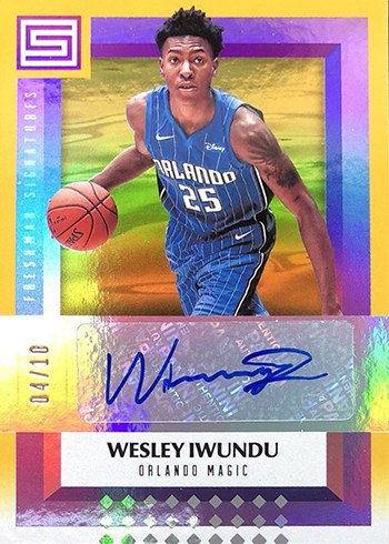 The one-per-hobby-box autographs come in a few different forms. Elite Signatures, Freshman Signatures and Legendary Signatures all have similar colorful designs. However, the names help break up the checklists into veterans, rookies and retired players.