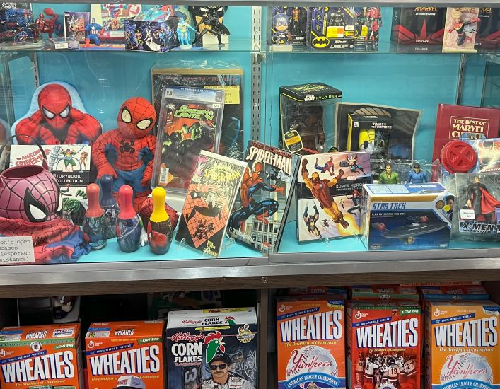 “We bought considerable amounts of non-sports cards in the beginning; they were not in the store before. The store was pretty much strictly baseball, but we branched out from there. We buy anything that is a bargain. My daughter bought Funko Pops, they make a nice decoration. It adds character around the shop. We have Wheaties boxes. They look great but they don’t sell, but people are touched by them when they see them. It is a great part of the charm of the shop. They still have Wheaties in them, maybe that is why they don’t sell (laughs).