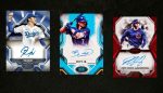 On the multi-signature front are Dual and Triple Autographs. There are also four scarce Tier One Sluggers Triple Relic Autographs.