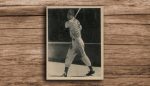 Babe Ruth is not found in the set but he retired in 1935. Joe DiMaggio also doesn’t appear, but he was only a rookie in 1936. Astute collectors know that DiMaggio did in fact appear in Goudey’s Wide Pen photo premium set that year. But that issue also had a much larger checklist compared to the 1936 Goudey card set, which featured only 25 cards. Pitching phenom Bob Feller was also left out, but he, too, was a first-year player. There’s no Lou Gehrig, either. However, after Goudey replaced the popular “Lou Gehrig says” cards with “Chuck Klein says” cards in the high number series of the 1934 set, it is possible that he and the gum manufacturer were not doing business together at the time.